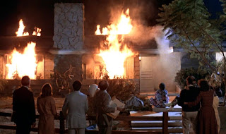 Vague plans of reaching Montana are lightly discussed. Kit spins a bottle to figure out which direction to drive. "We'll keep on heading towards that mountain. Just remember I said it wasn't such a hot idea," he says. Once their destination is named, their fate is sealed. The end is very near. And if we never get a distinct read on what drives them, perhaps Malick intended as such. Imagery and mood predominate, not psychological profiling. Despite their protestations of love, loyalty, and romance, Holly and Kit are as empty as the desert they race through, and probably as eternal.